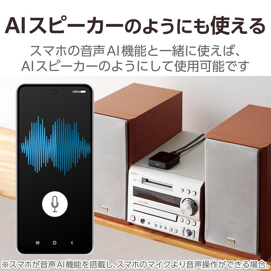 ■ご自宅のオーディオをワイヤレス化できるだけでなく、スマートフォンの音声AI機能と一緒に使えば、ご自宅のオーディオをAIスピーカーのようにして使用可能です。※スマートフォンが音声AI機能を搭載し、スマートフォンのマイクより音声操作ができる場合