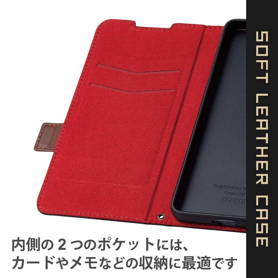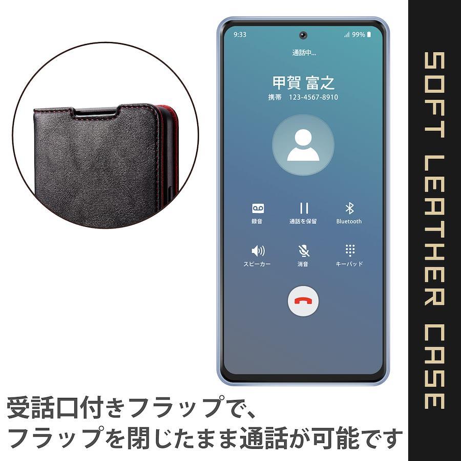 【 仕様 】■ 対応機種:Galaxy A53 5G(SC-53C/SCG15)■ セット内容:ケース本体×1■ 材質:ケース本体:合成皮革、TPU(熱可塑性ポリウレタン)■ カラー:ブラック【 説明 】■ 便利な7つの機能を搭載した、革のようなやわらかな風合いのGalaxy A53 5G(SC-53C/SCG15)用ソフトレザーケース(手帳型)です。■ 1コーナーにエアクッションを使用し、耐衝撃性を高めています。■ 2横開きタイプのフラップは内側が裏起毛となっており、未使用時の液晶画面を保護します。■ 3マグネット付きフラップなので、簡単に開け閉め可能です。■ 4受話口付きフラップなので、フラップを閉じたまま通話が可能です。■ 5内側にカードや名刺、メモなどを収納できるポケットが2つ付いており、カードを出し入れすることなく、そのままICカードを使用可能です。※フラップを開いてご使用ください。■ 6背面を折り曲げることでスタンドとして使用でき、動画視聴などを快適に楽しめます。■ 7ストラップの取り付けができるストラップホールが付いています。※本製品にストラップは付属していません。■ 本体装着部分に衝撃を吸収するTPU素材を使用し、機器本体を衝撃から守ります。■ ケースを装着したままで液晶画面の確認、本体の操作、充電・通信ケーブルの接続が可能です。■ ストラップの取り付けができるストラップホールが付いています。※本製品にストラップは付属していません。【商品に関するお問い合わせ】エレコム総合インフォメーションセンターTEL. 0570-084-465FAX. 0570-050-012受付時間 / 10:00~19:00 年中無休