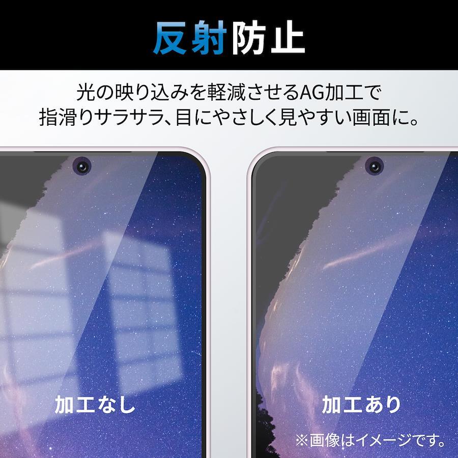 【 説明 】■端末の画面を傷や汚れから守る、指紋防止、反射防止タイプの画面保護フィルムです。■指紋・皮脂汚れが付きにくく、残った場合でも簡単に拭き取れる指紋防止加工を施しています。■光の映り込みを抑え、見やすい画面を実現する反射防止タイプです。■フィルムを装着した状態でも、画面内指紋認証に対応します。■※フィルムを装着した状態で画面内指紋認証機能を利用する場合は、装着した状態で指紋の再登録を行ってください。■貼り付け面にシリコン皮膜をコーティングし、接着剤や両面テープを使わずに貼り付け可能な自己吸着タイプです。貼りやすく、貼り直しも可能です。■時間の経過とともに気泡が目立たなくなる、特殊吸着層を採用したエアーレス加工を施しています。■端末の形状に合わせたサイズにカット済みなので、パッケージから取り出してすぐに使用可能です。■こちらの製品は表面上における細菌の増殖を抑制、あるいは阻害する性能を有したもので、財団法人日本規格協会(JSA)が定める抗菌性試験に準拠したものです。■抗菌とは、製品の表面上に存在する菌の増殖を抑制することです。JIS(日本工業会)では抗菌加工されていない製品の表面と比較して、細菌を99%以上抑制出来ている場合、その製品に抗菌効果があると規定しています。■フィルムがキレイに貼れる、クリーニングクロス、ホコリ取りシールが付属しています。■廃棄物削減に取り組み、製品に同梱する取扱説明書等をペーパーレス化した製品です。■製品の包装容器が紙・ダンボール・ポリ袋のみで構成されている製品です。