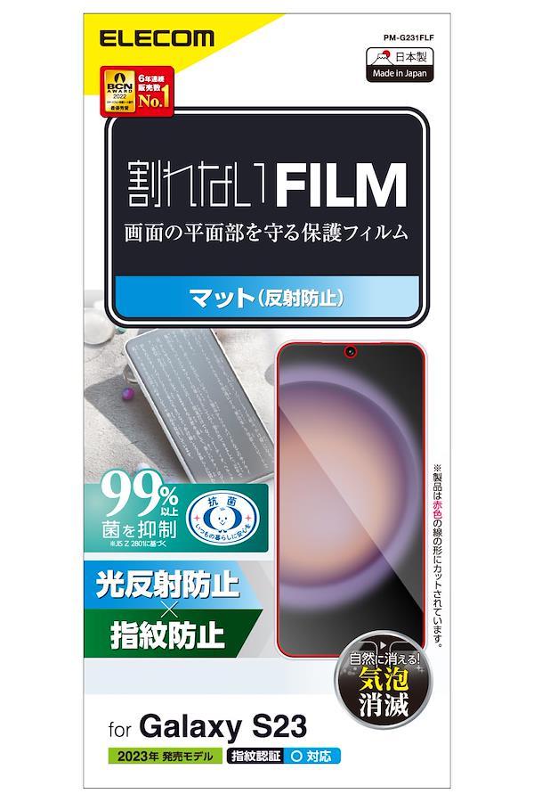 【 仕様 】■対応機種:Galaxy S23(SC-51D/SCG19)■セット内容:画面保護フィルム(指紋防止、反射防止仕様)×1、クリーニングクロス×1、ホコリ取りシール×1■材質:接着面:シリコン、外側:PET