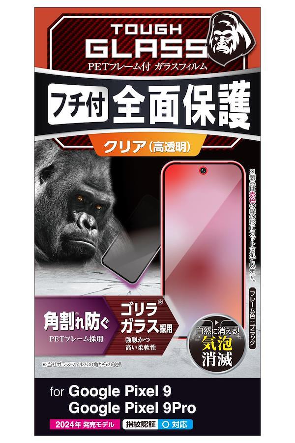 【仕様】■対応機種:Google Pixel 9/9 Pro■セット内容:画面保護ガラス(フレーム付き、Gorilla(R)ガラス0.21mm、高透明タイプ)×1、クリーニングクロス×1、ホコリ取りシール×1■材質:接着面:シリコン、外側:ガラス・PET