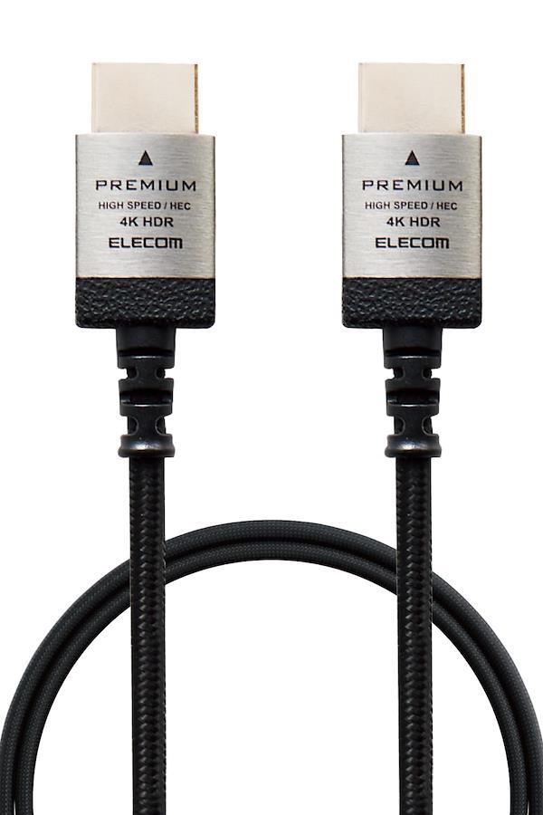 ELECOM HDMI Cable, 1m Slim, Premium High Speed, 4K 2K (60P) Compatible, Nylon Mesh Cable, Aluminum Connector, Black