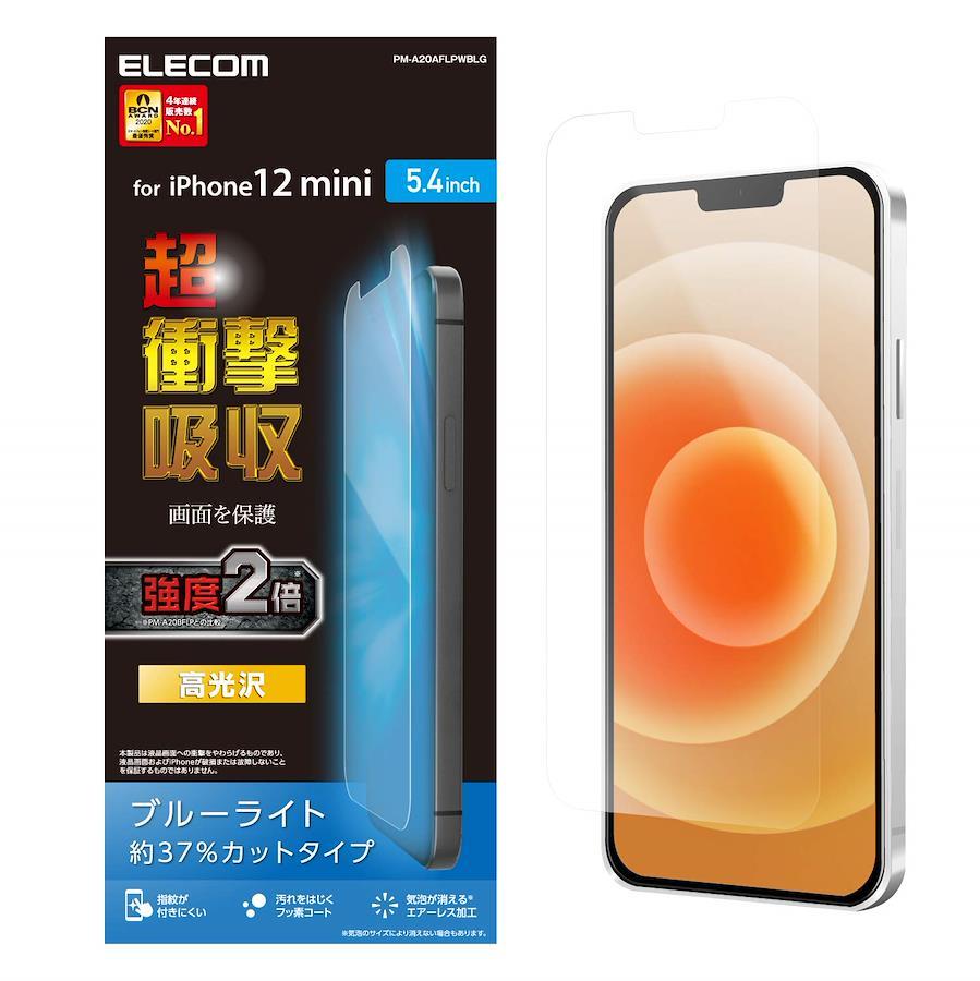 ■ 強度2倍を実現!特殊多層構造でiPhone miniの液晶画面を保護する、ブルーライトカット、高光沢タイプの超衝撃吸収フィルムです。※当社液晶保護フィルム製品内の比較 ■ ガラスに100cmの高さから300gの鉄球を落とす実験で、従来品ではガラスパネルが破損したのに対し、本製品はガラスパネルを守る結果となりました。※当社試験結果より ■ 150gの衝撃を吸収する既存品に対して、2倍の強度を実現しています。※PM-A20BFLPとの比較 ※ 当社によるガラスへの硬球落下試験結果(実力値)より。実力値であり保証値ではありません。 ■ 液晶ディスプレイが発する光の中の青い部分「ブルーライト」を約37%カットします。 ※ ブルーライトは目の角膜や水晶体で吸収されずに網膜まで到達し、網膜の機能低下を引き起こす場合があると言われています。 ※ ブルーライトカット機能の性質上、フィルムが黄色味がかっていますが、機器本体の操作には影響しません。 ■ つやのある高光沢タイプで、液晶画面を鮮やかに彩ります。 ※ フィルム表面に表面シートの糊が付着している可能性があるため、ご使用の際は付属のクリーニングクロスで拭いてからご使用ください。 ■ 貼り付け面にシリコン皮膜をコーティングし、接着剤や両面テープを使わずに貼り付け可能な自己吸着タイプです。貼りやすく、貼り直しも可能です。 ■ 時間の経過とともに気泡が目立たなくなる特殊吸着層を採用したエアーレスタイプです。 ■ 指紋・皮脂汚れが付きにくく、残った場合でも簡単に拭き取れる指紋防止加工を施しています。 ■ 端末の形状に合わせたサイズにカット済みなので、パッケージから取り出してすぐに使用可能です。 ■ フィルムを貼ったままでも本体操作ができるタッチスクリーン入力に対応しています。 ■ フィルムがキレイに貼れる、専用ヘラと、クリーニングクロス、ホコリ取りシールが付属しています。