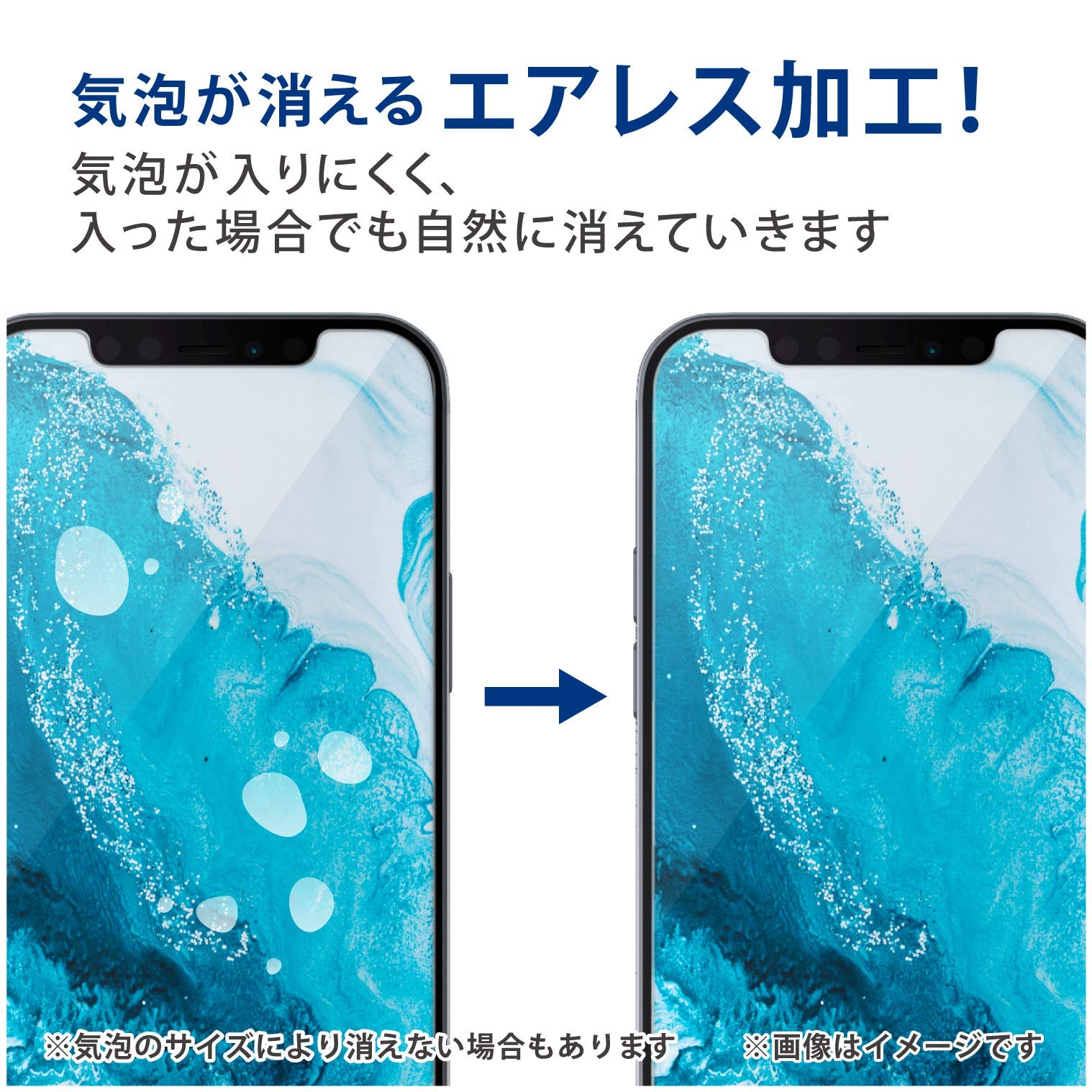 【 説明 】■ ガラスのように美しい透明感を実現!割れに強く、ガラスと同じ高硬度9Hを実現したiPhone 12 Pro Max用液晶保護フィルムです。■ 表面硬度9Hのハードコート加工により、フィルム表面のキズを防止します。※表面硬度は実力値です。■ 貼り付け面にシリコン皮膜をコーティングし、接着剤や両面テープを使わずに貼り付け可能な自己吸着タイプです。貼りやすく、貼り直しも可能です。■ 時間の経過とともに気泡が目立たなくなる特殊吸着層を採用したエアーレスタイプです。■ 指紋・皮脂汚れが付きにくく、残った場合でも簡単に拭き取れる指紋防止加工を施しています。■ 端末の形状に合わせたサイズにカット済みなので、パッケージから取り出してすぐに使用可能です。■ フィルムを貼ったままでも本体操作ができるタッチスクリーン入力に対応しています。