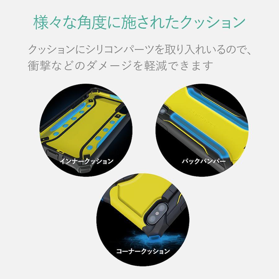 ■ZEROSHOCK史上最強で、抜群の耐衝撃性能を誇る、新設計のiPhone X用ZEROSHOCK αです。 ■強靱なポリカーボネート、強靱かつしなやかなTPU、衝撃吸収性能に優れたシリコン、αGEL、4つのマテリアルを最適に配置し、高耐衝撃性能を実現します。 ■αGELとはシリコーンを主原料とする優れた衝撃吸収力を持つ柔らかいゲル状素材です。 ■iPhoneとケースの間に空間を設けた中空構造を採用しています。実機を浮かせるように配置することで、外部からの衝撃、振動を吸収、緩和します。