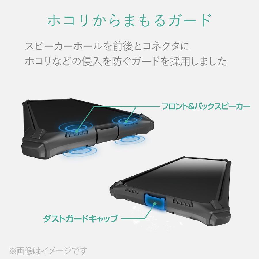 ケース側面に滑りにくい表面加工を施したサイドグリップ設計で、持ちやすさを向上しています。