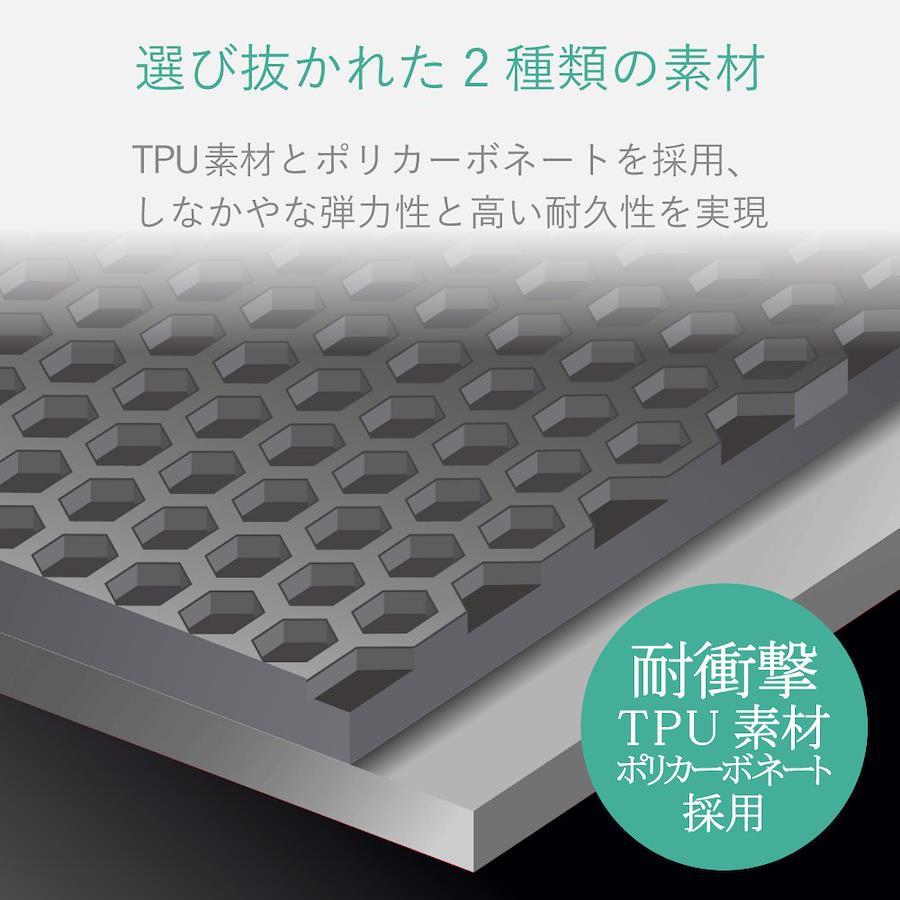 強靱なPCフレームを柔軟なTPUで包み込むデュアルストラクチャーで本体を保護します。