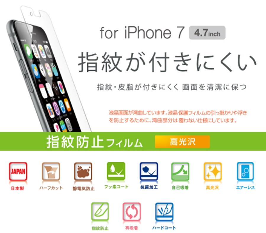 iPhone 7用の液晶画面を守り、指紋・皮脂が付きにくく、残った場合も簡単に拭き取れる指紋防止タイプの液晶保護フィルムです。