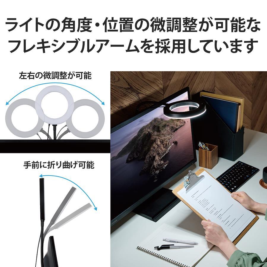 ■フレキシブルアームのため、ライトの角度・位置の微調整が可能で、手前に折り曲げることでデスクライトとしても使用可能。手元も明るく照らせます。