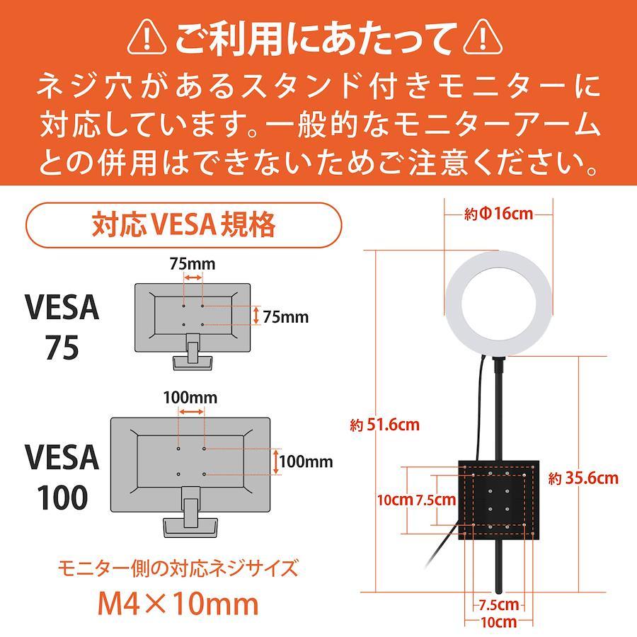 ■対応モニター:VESA規格(75mm×75mm、100mm×100mm)のネジ穴があるスタンド付きモニター ※モニターの背面形状によっては設置できない場合があります。