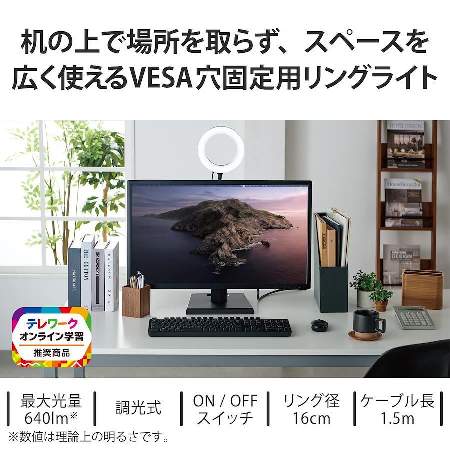 動画配信・オンライン会議に最適なマウントタイプのリングライトです。室内でも明るく撮れるようになり、「暗くて顔がよく見えない」を解決します。