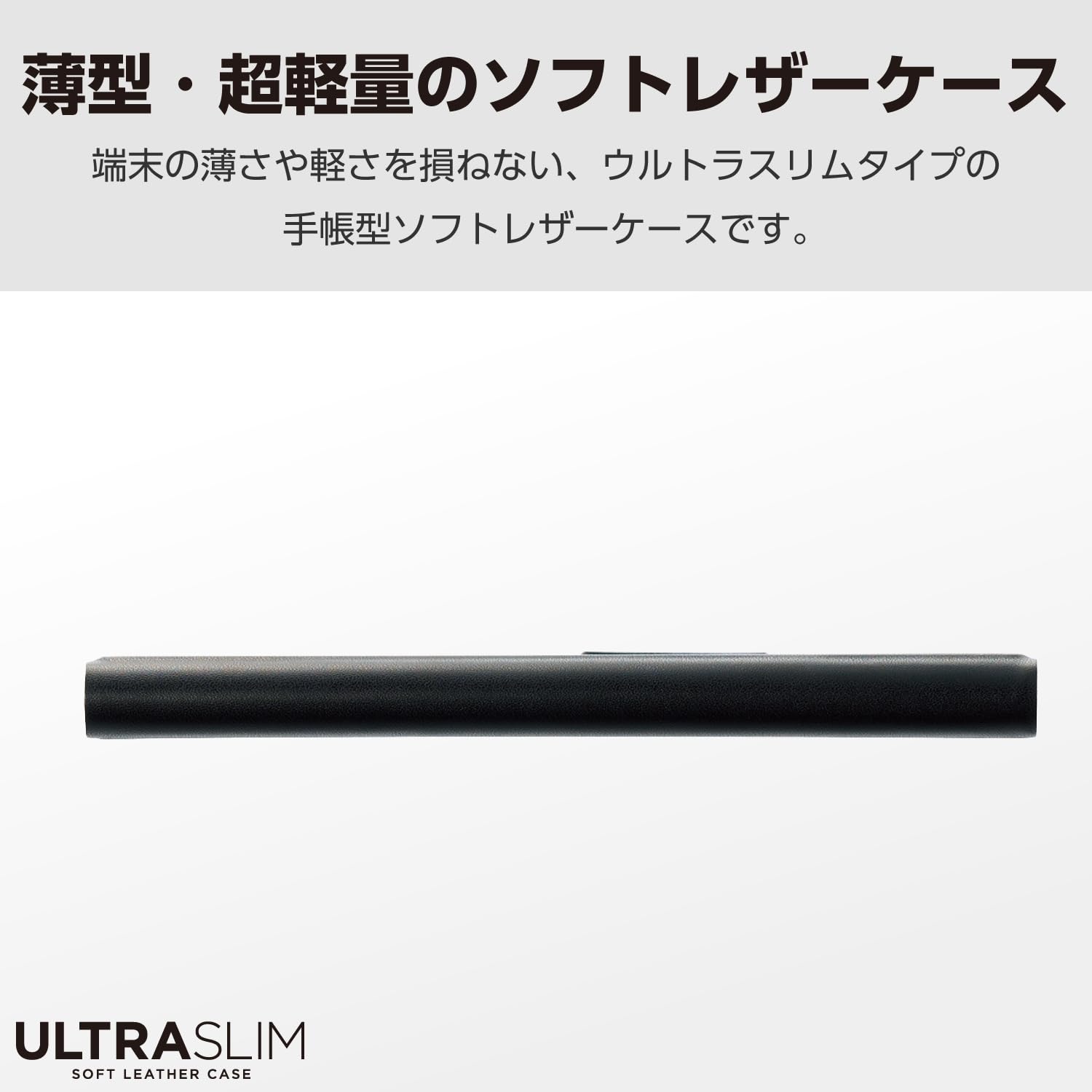 ■端末の薄さや軽さを損ねない、薄型・超軽量なウルトラスリムタイプのソフトレザーケース(手帳型)です。
