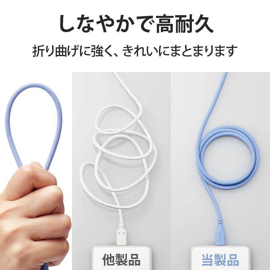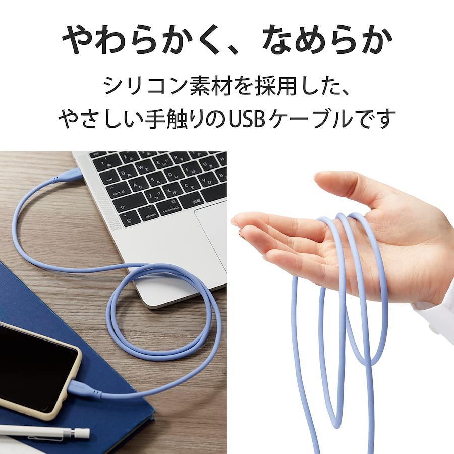 【 説明 】■スモーキー&ニュアンスカラーがオシャレなUSBケーブルです。■シリコン素材を採用した柔らかく、なめらかな手触りのUSBケーブルです。■絡みにくく、取り回しがしやすいです。■断線しにくい高密度配線ケーブルを採用しています。■USB Type-C(TM)コネクターを搭載しているパソコン及び充電器・モバイルバッテリーなどに、USB Type-C(TM)コネクターを搭載しているスマートフォンやタブレットを接続し、充電やデータ転送ができます。■最大60W(20V/3A)で接続機器の充電が可能です。■※ご使用になるパソコンなどの性能によって、供給される電力値が異なります。■最大480Mbpsのデータ転送が可能です。■サビなどに強く信号劣化を抑える金メッキピンを採用しています。■難燃性の素材を使用し、安全性を高めています。■EUの「RoHS指令(電気・電子機器に対する特定有害物質の使用制限)」に準拠(10物質)した、環境にやさしい製品です。■ゴミの少ない簡易パッケージです。■自社環境認定基準を1つ以上満たし、『THINK ECOLOGY』マークを表示した製品です。■環境保全に取り組み、製品の包装容器におけるプラスチック重量を、社内基準製品より20%以上削減した製品です。■環境保全に取り組み、製品の包装容器が紙・ダンボール・ポリ袋のみで構成されている製品です。