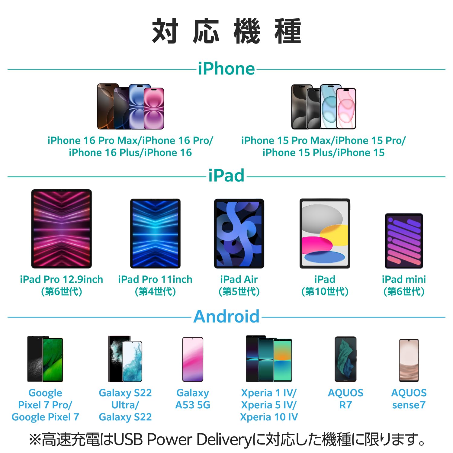 ■対応機種:USB Type-C(TM)(USB-C(TM))ポートからUSB Power Delivery 3.0(20W)の規格内で充電が可能な機器