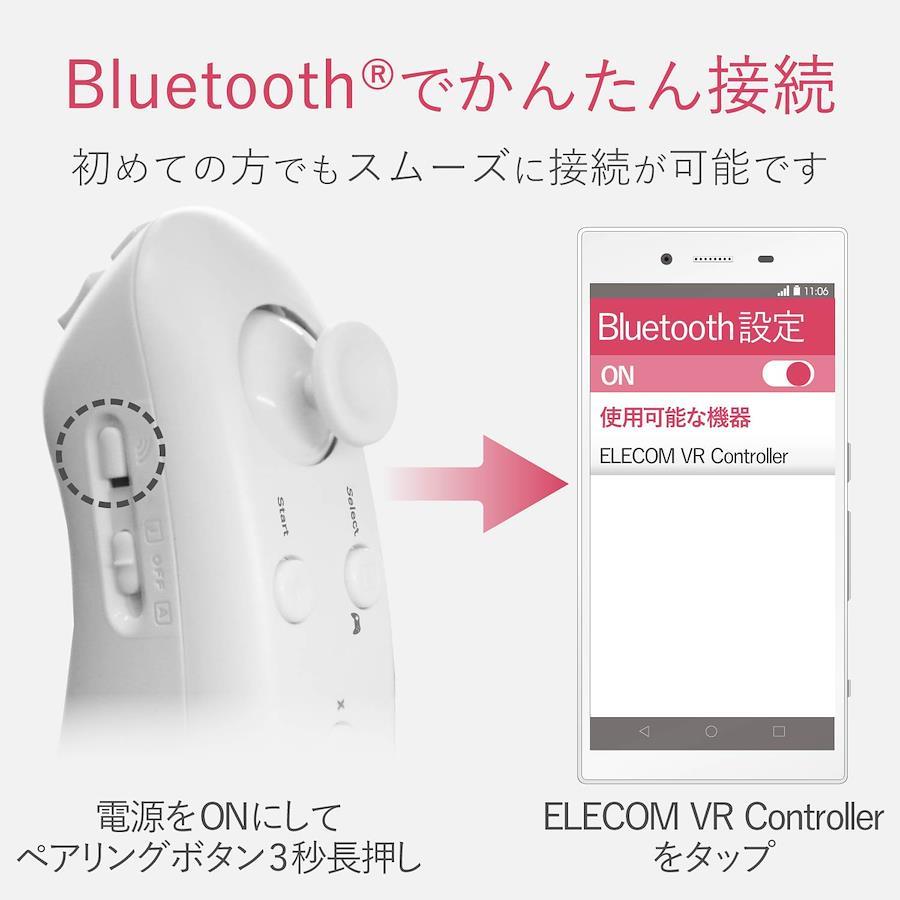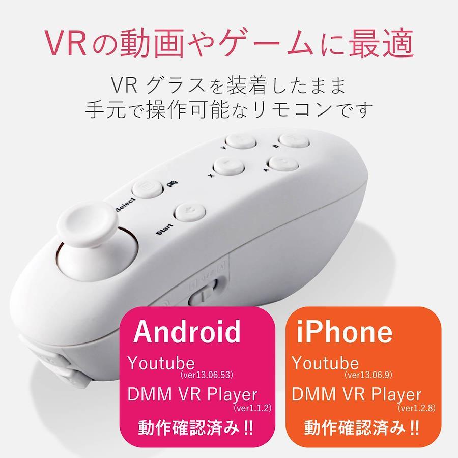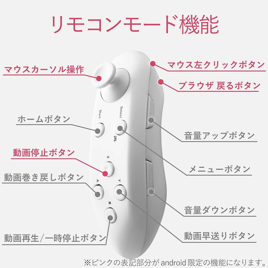 ■VRグラスを装着したまま、スマホでのVR動画の操作を手元でできるVR用Bluetooth(R)リモコンです。