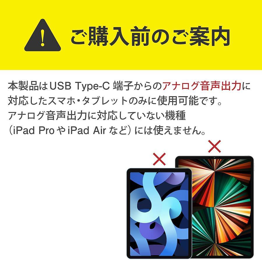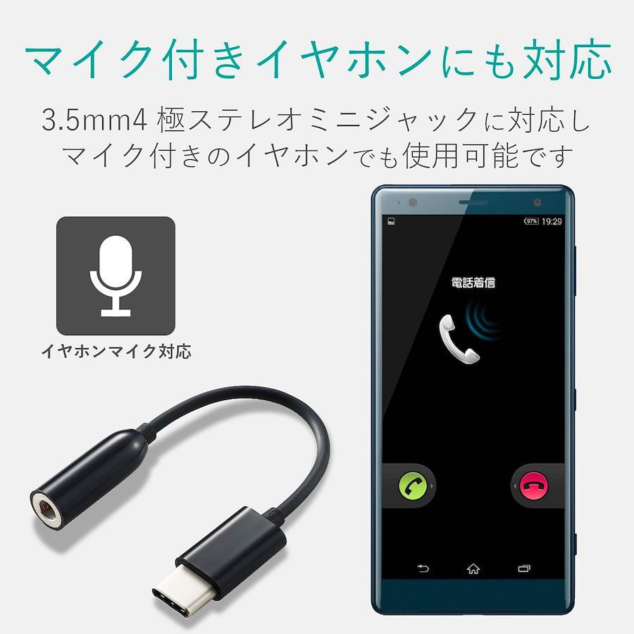 USB Type-C端子搭載スマートフォン/タブレットに接続することで、3.5mmステレオミニ端子のイヤホン・ヘッドホンが使用できるようになるUSB Type-C変換ケーブルです。3.5mm4極ステレオミニジャックを搭載しているので、マイク付きイヤホンにも対応します。スマートフォンやタブレットを操作する際に、邪魔になりにくい細くて柔らかいケーブルを採用しています。コネクタを含むケーブル全長は0.1mです。高品質樹脂を使用したコンパクトコネクタを採用しています。※USB Type-C端子からの音声出力に対応していない機種では、本製品をご利用頂けません。