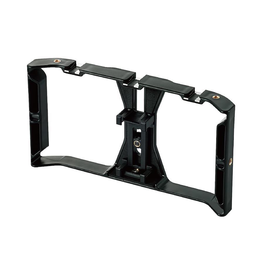 カメラやライト、マイクなどの撮影機材をカスタマイズして装着できる、動画撮影用スマートフォンホルダーです。