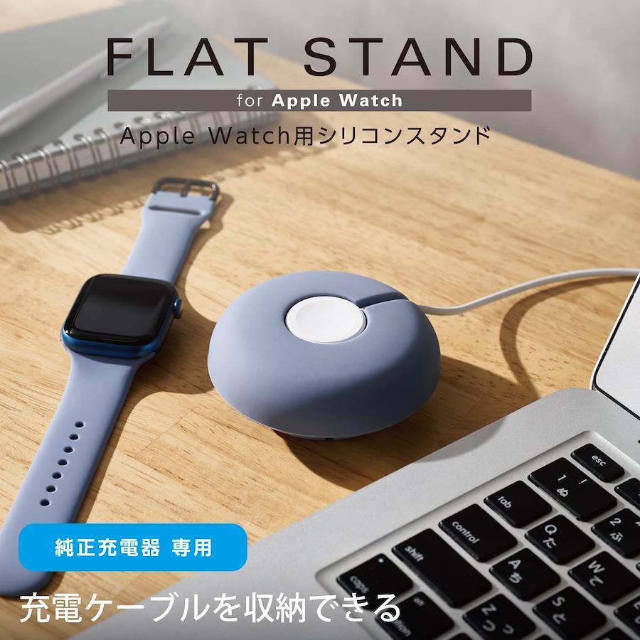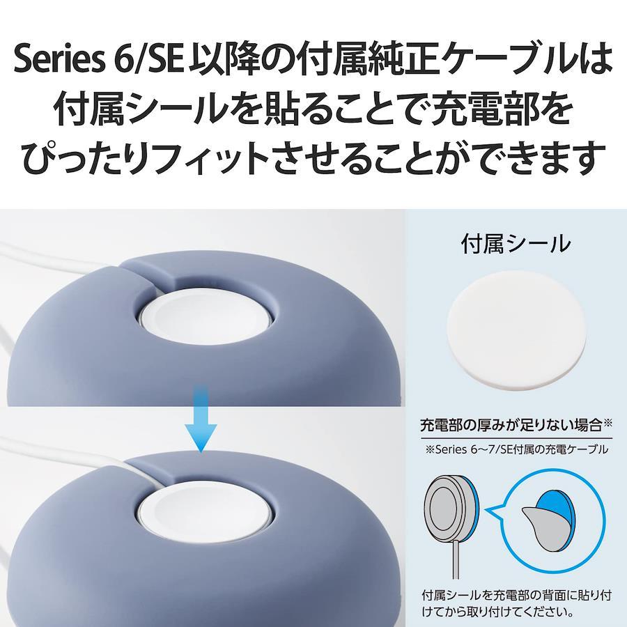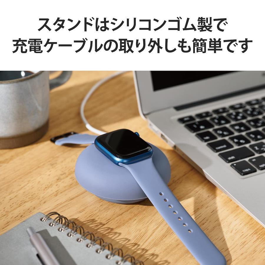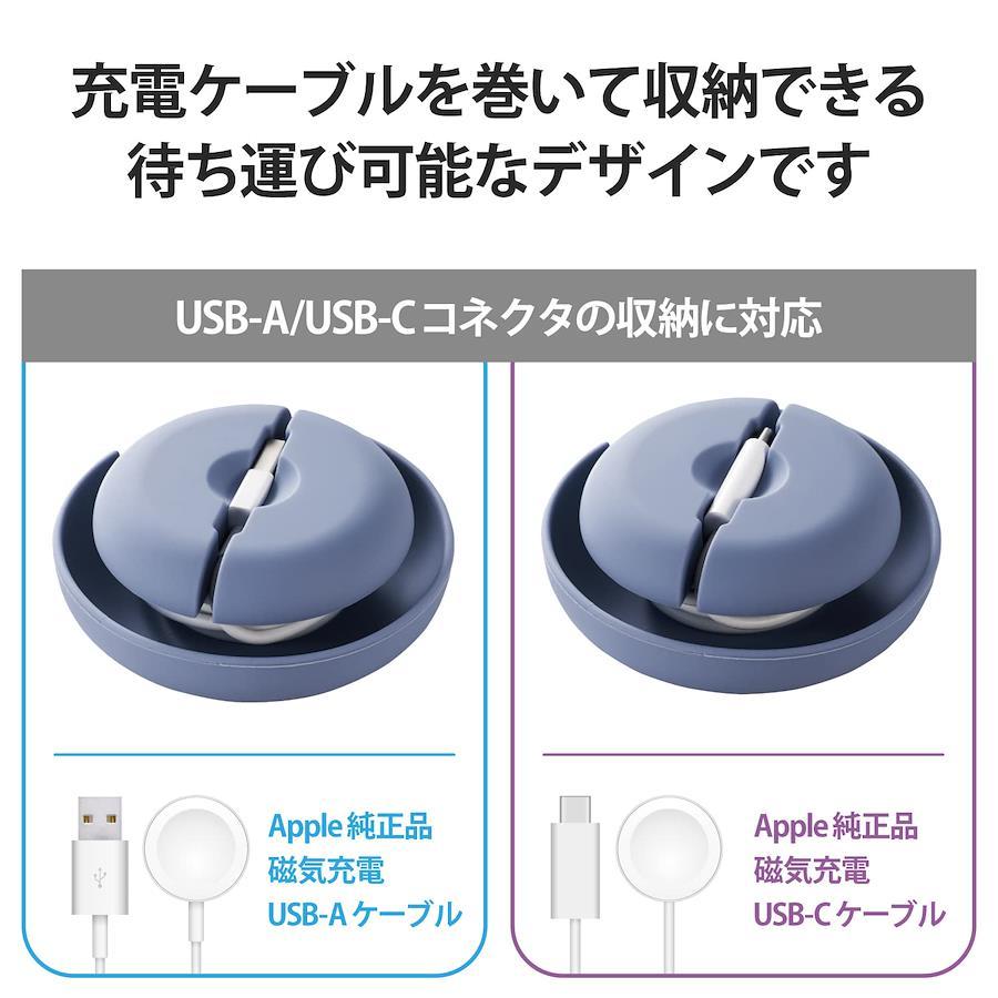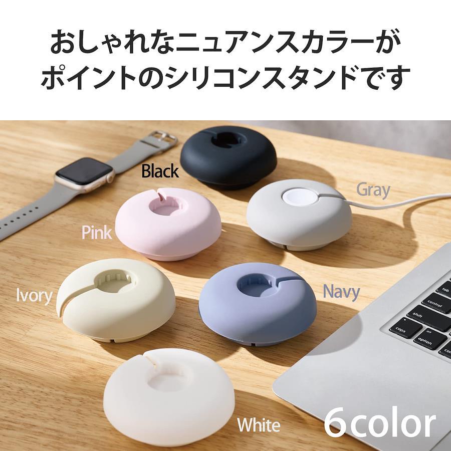 【 説明 】■ 純正Apple Watch磁気充電ケーブルを装着・接続することで、Apple Watchの設置と充電ができるApple Watch用巻取シリコンスタンドです。■ 純正Apple Watch磁気充電ケーブルを巻いて収納できるため持ち運びに便利なスタンドです。■ おしゃれなニュアンスカラーがポイントのシリコンスタンドです。■ Apple Watch Ultra、SE(第2世代)、SE、Series 8、7、6、5、4、3、2、1に対応しています。■ スタンドはシリコンゴム製で、Apple Watch磁気充電ケーブルの脱着を簡単に行なえます。■ 充電部の厚みが足りない純正ケーブルには、付属シールを充電部の背面に貼り付けてからスタンドへ取り付けてください。■ ※Series 6、SE以降付属の充電ケーブル■ 本製品の構造仕様上、対応機種でもバランスの悪い場合はスタンド状態を維持することができない場合がありますのでご了承ください。■ ※ソロループバンドの場合片側を外してご使用ください。