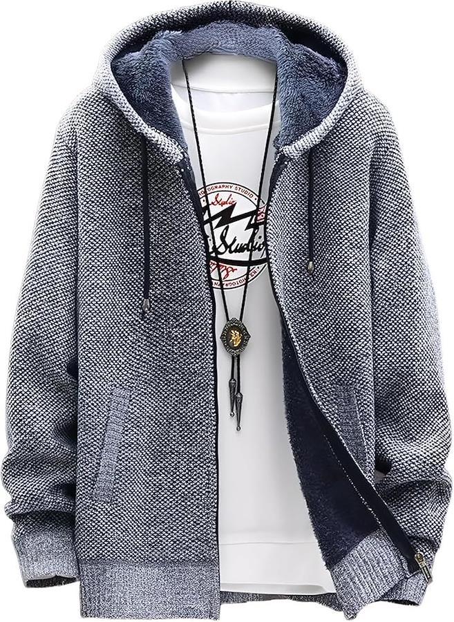 *カジュアルになりがちなフルジップパーカーも表面のニット素材と杢柄が大人な印象に