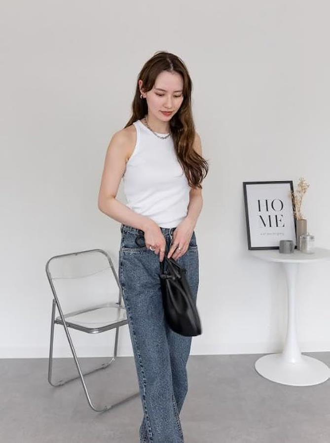 アメリカンスリーブのタンクトップは、シンプルにもアクセントにも使いやすいのが魅力のアイテム。