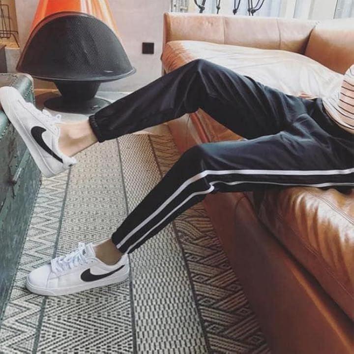 *足元にはジョギングシューズはもちろん、スニーカーやスリッポンシューズなどでカジュアルに合わせても