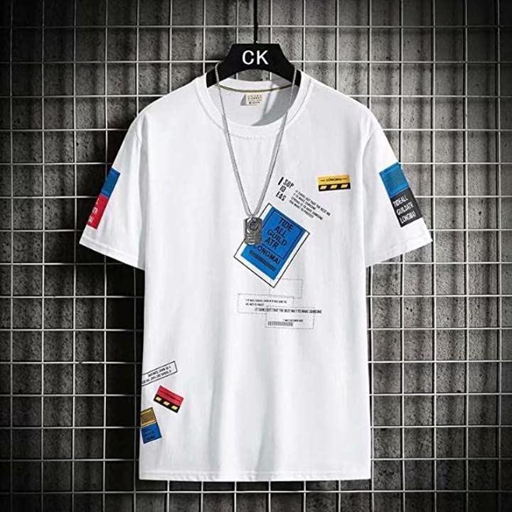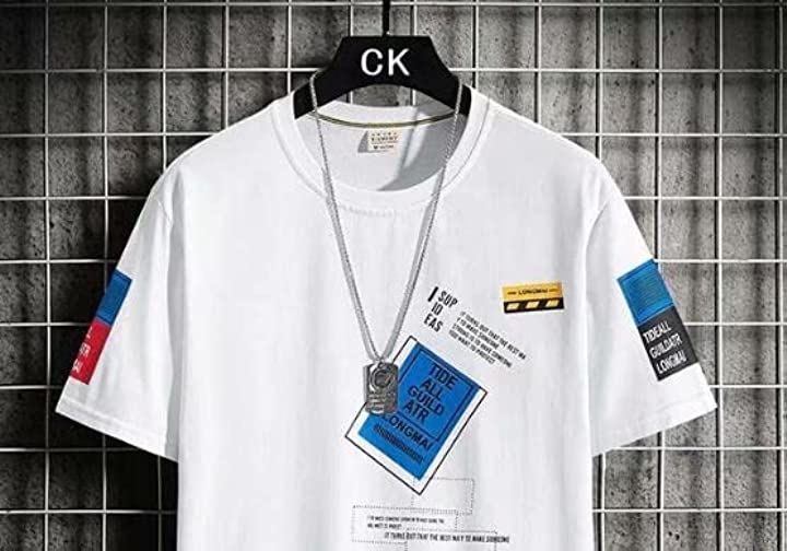 *フロントにあしらったロックテイストやV系ロゴなどの配色プリントがトレンドライクなカットソーTシャツ**シンプルながらもこなれ感のあるデザインで、着回し力も抜群の1着*