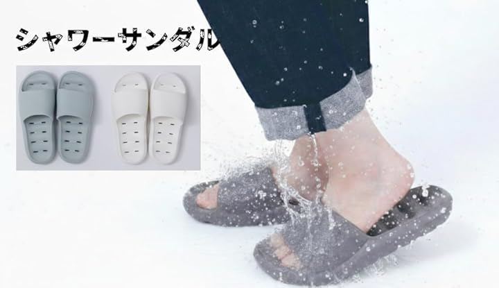 「素材 EVA素材」 水に強いEVA素材を採用し、ビーチやプールサイド、ベランダ等の水に濡れるシーンで活躍するサンダル。海辺の散策からゴミ出しなどのちょっとした外出まで、幅広いシーンで大活躍。