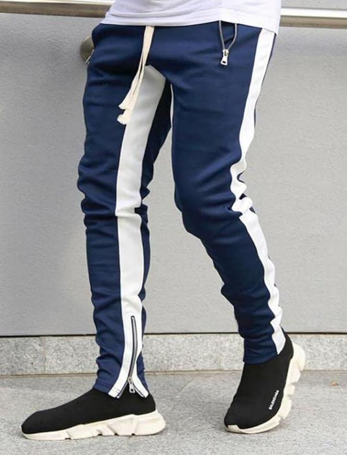 スタイリッシュな着こなしができ、スウェットジョガーパンツにスポーティさを加速させるサイドの1本ラインが縦長効果になり、よりすっきりとした足元が完成しました。