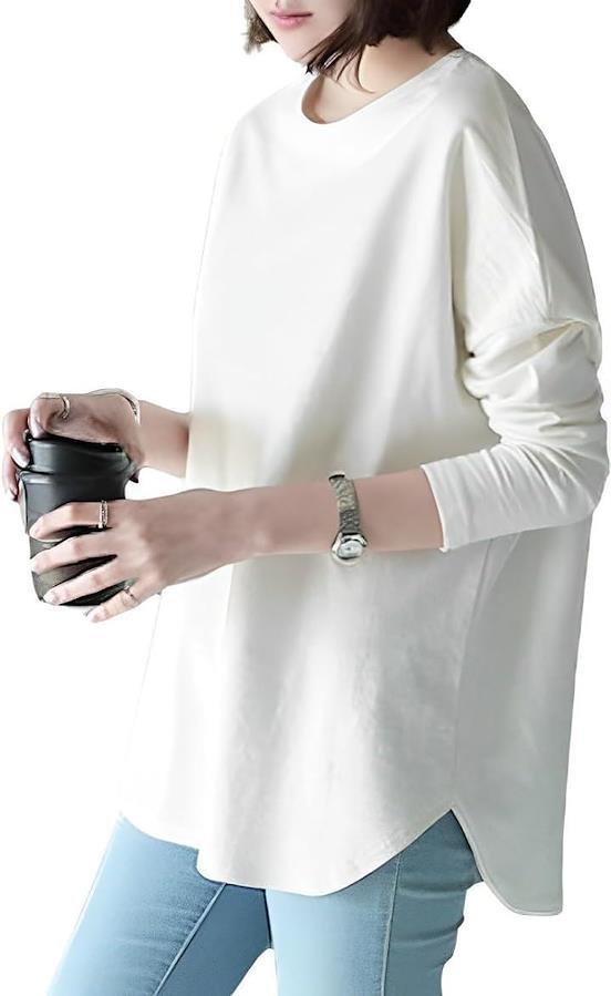 *長袖は腕のラインを引き締め、ゆったりとしたカットは体の欠点を隠して女性らしいゆるやかなリラックスできちゃいます。