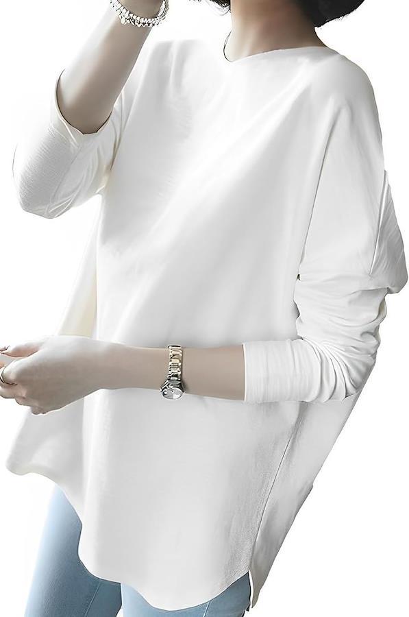 *長袖は腕のラインを引き締め、ゆったりとしたカットは体の欠点を隠して女性らしいゆるやかなリラックスできちゃいます。