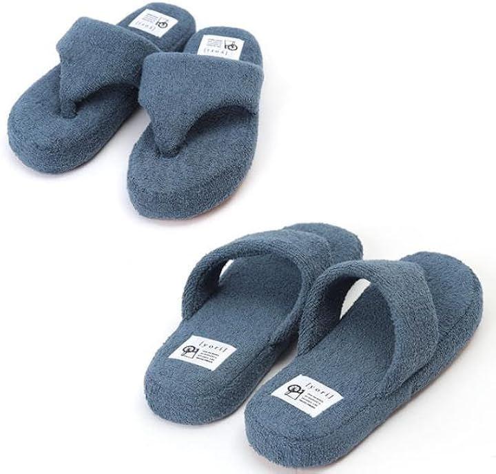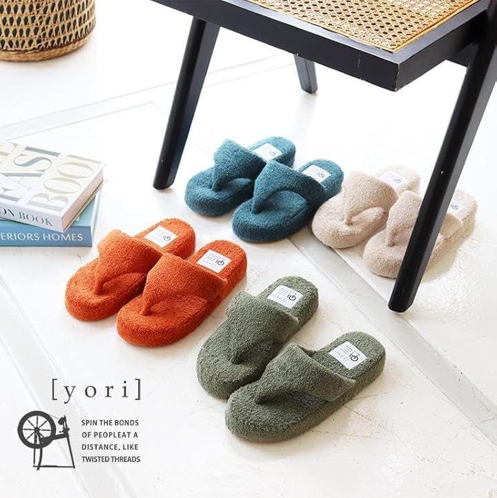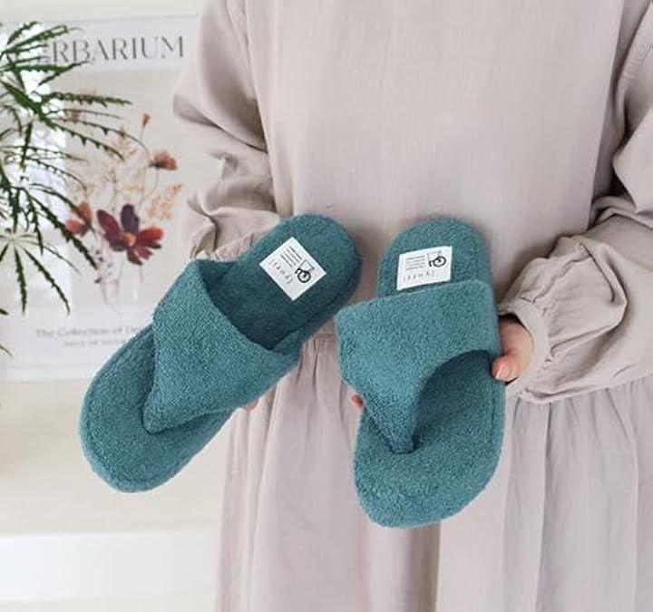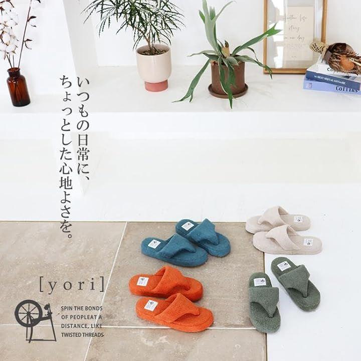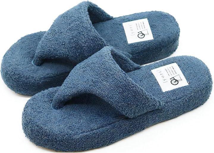 綿100%のコットンパイル素材のサンダル風ルームシューズは、足先の解放感があり、ムレが気になる方にもおすすめのトングタイプスリッパ。