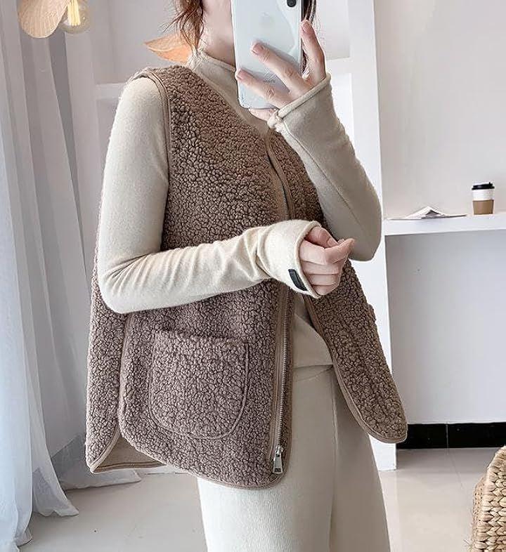 もこもこ感がかわいいプードルフェイクベストはカジュアルコーデにぴったりのアイテム。