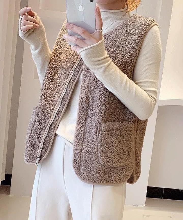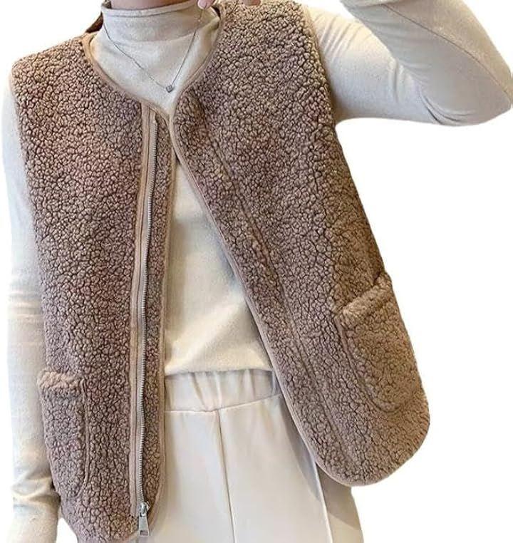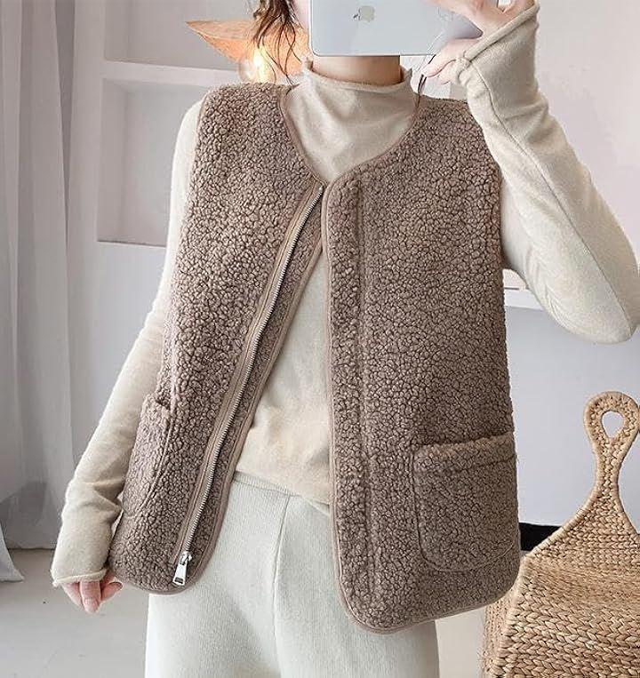 もこもこ感がかわいいプードルフェイクベストはカジュアルコーデにぴったりのアイテム。