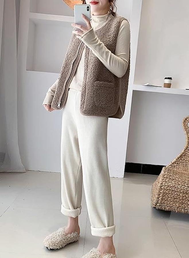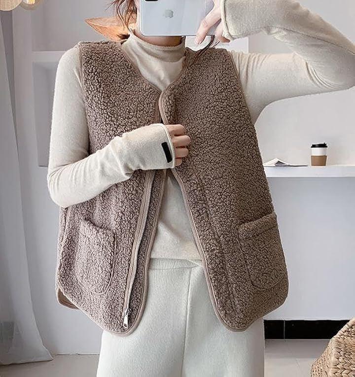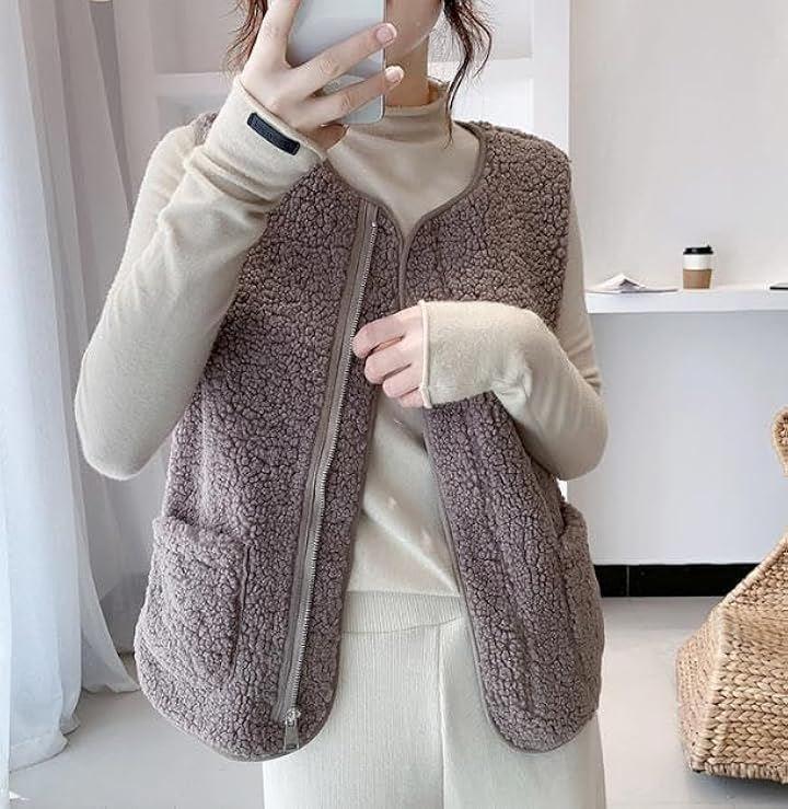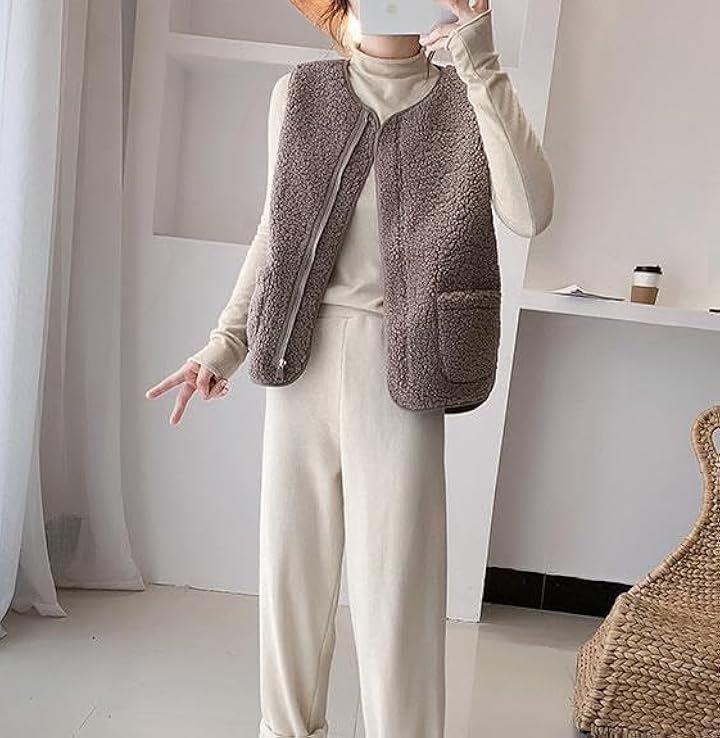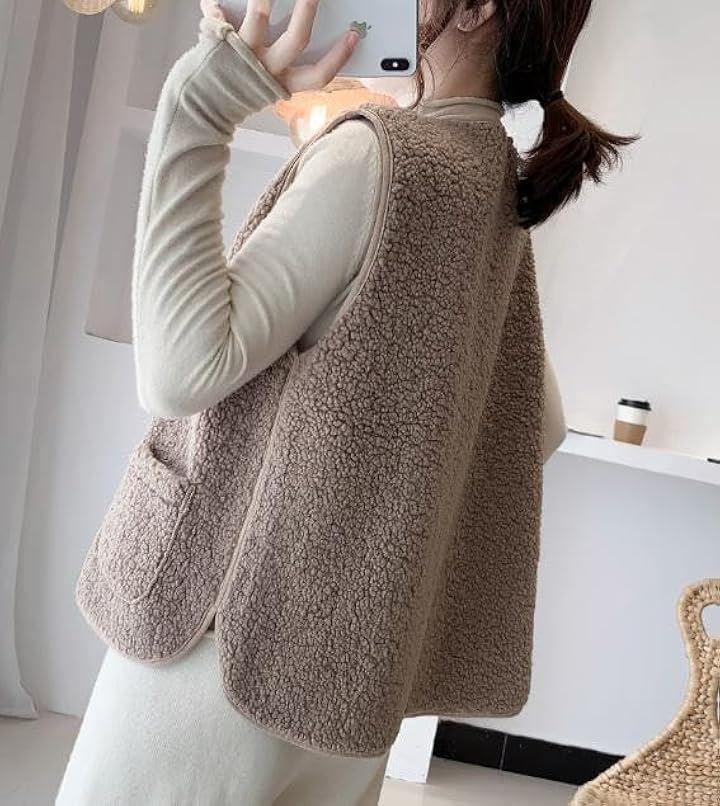 もこもこ感がかわいいプードルフェイクベストはカジュアルコーデにぴったりのアイテム。