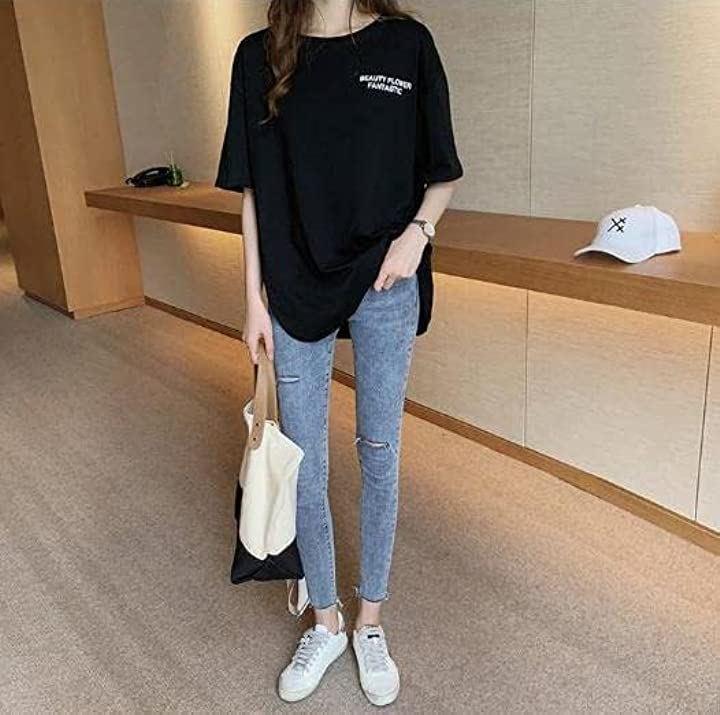 サイドにスリットが入ったヒップまで隠れるロング丈カットソーは、カジュアルにもキレイめにも。