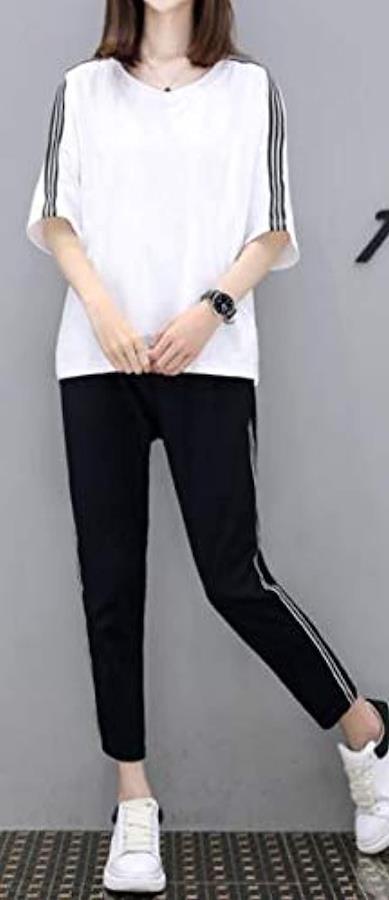 *トップスの肩口とパンツのサイドにトレンドのダブルラインが入ったスタンダードなアイテム*