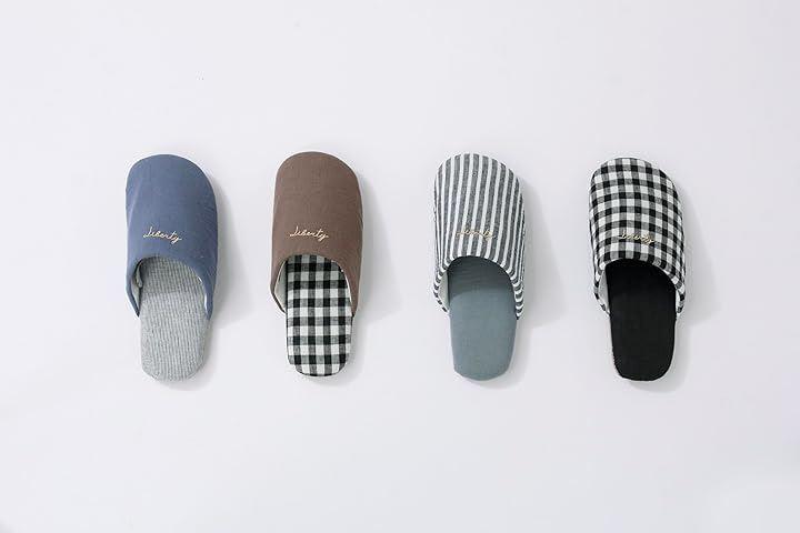 ストライプやチェック柄がかわいい、柔らかいけどハリのあるコットンリネン生地が嬉しいソフトスリッパ
