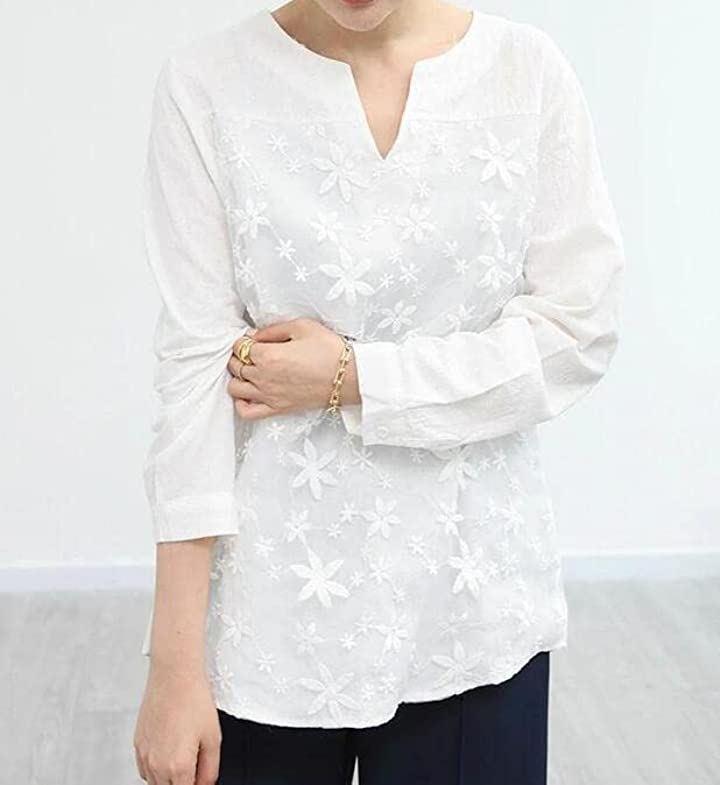・*綿混の柔らかくさらっとした肌ざわりで、少し透け感があるのでシーズンムードが高まる素材感**フェミニンな雰囲気ながらも、ディテールの程よい大人な印象に**リラックスムードを演出する、ゆったりとしたサイズ感での着こなしも***1枚で主役になってくれる華やかな印象のシャツブラウスとして、おすすめのアイテム*