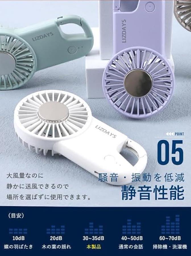静音設計&大容量バッテリー搭載で外出先でも気兼ねなく使える携帯用扇風機。