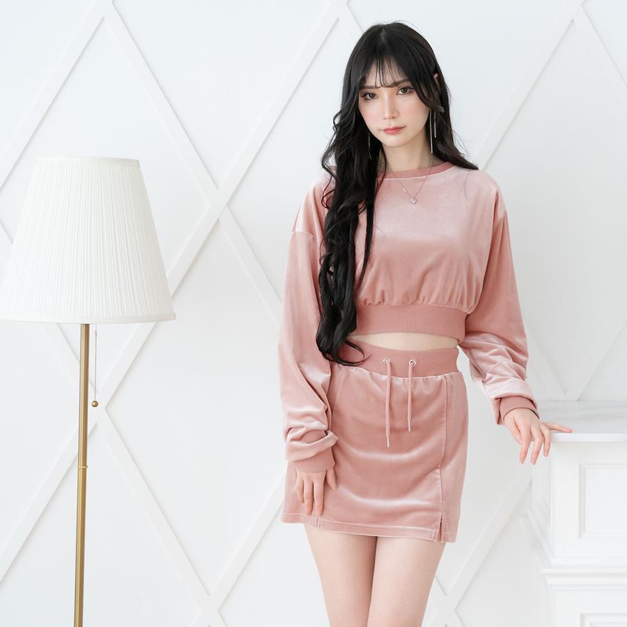 思わず触りたくなるようなベロア素材は着心地が良く、シワにもなりにくいのでワンマイルウェアにぴったり!