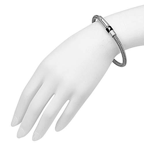 サイズ:腕回り約19cmまで対応 / 幅約0.4cmカラー:シルバー/ブラック素材:ステンレススチール付属品:専用BOX、専用保存布袋