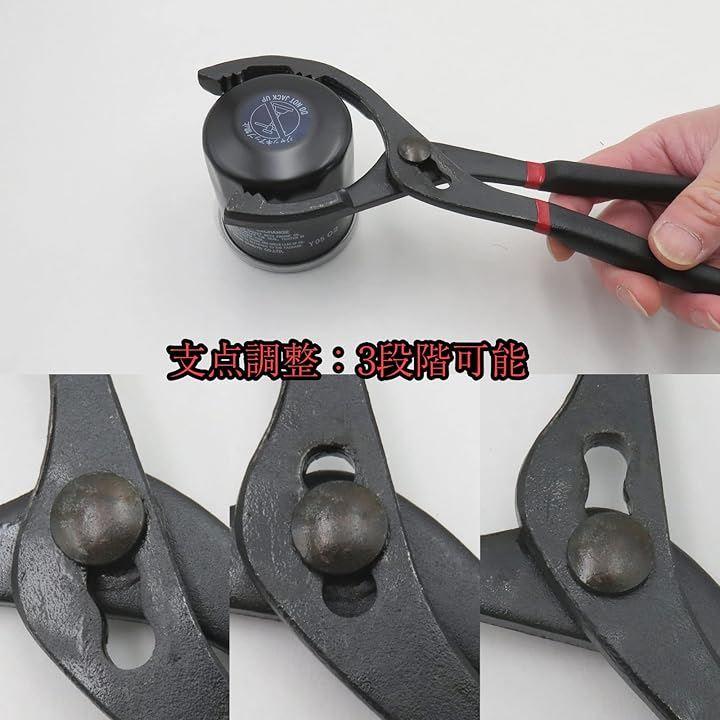可動域が広く、広範囲なサイズのオイルフィルターに対応できるプライヤータイプのオイルフィルターレンチです。