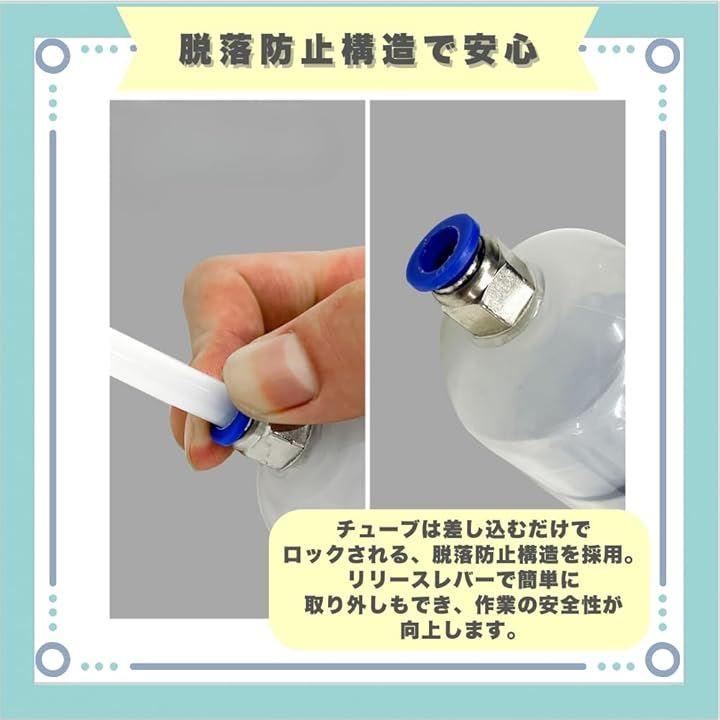 「脱落防止構造で安心」チューブは差し込むだけでロックされる、脱落防止構造を採用。