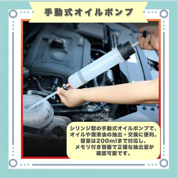 「手動式オイルポンプ」シリンジ型の手動式オイルポンプで、オイルや潤滑油の抽出・交換に便利。