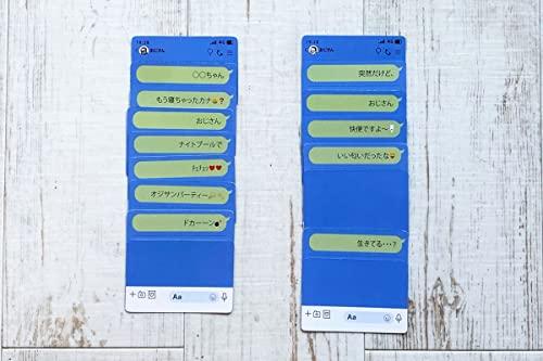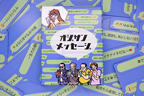 通常1-5営業日で発送:『オジサンメッセージ』とは、「おはよう~チュッ!」「ナンチャッテ★」などのワードを組み合わせ、あなただけの「おじさん構文」をつくり、女性役からの即ブロックを目指すボードゲームです。 ・収録されているオジサンワードは400種類以上!169京通り以上の組み合わせで、何度遊んでも楽しめる対戦型大喜利パーティーゲームです。 タイトル:オジサンメッセージ プレイ人数:3~5人 プレイ時間:15~30分 対象年齢:13歳~ ジャンル:対戦型大喜利パーティーゲーム 内容物: ①基本カード4枚・トーク画面(上下)×5セット ②オジサンカード100枚(400ワード) ※1枚のオジサンカードに4種類のワードが記載。 説明書は付属しません。裏面のQRコードから読み取りください。