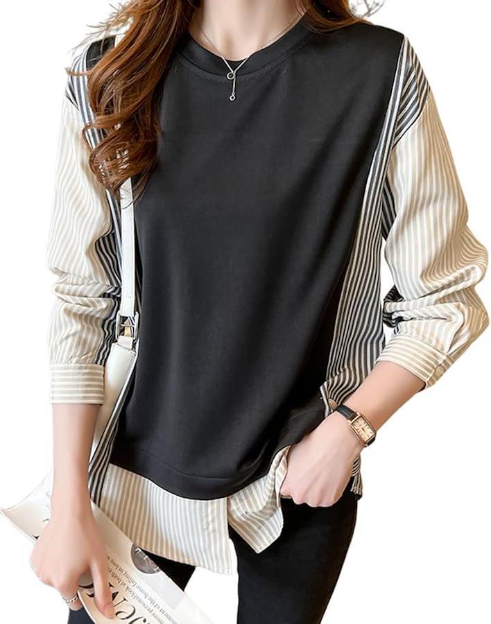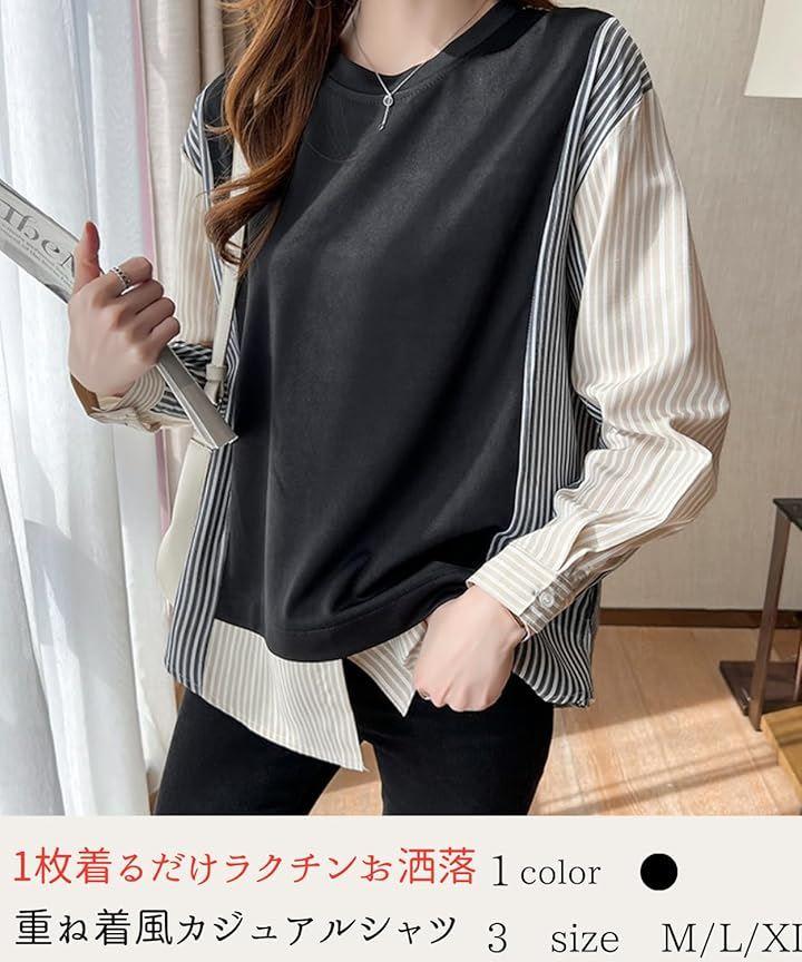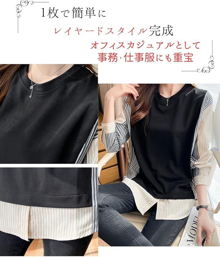 「一枚でこなれ感を演出する重ね着風チュニック」「オフィカジにもデイリーにも気楽に着回し 重ね着風 レディース 長袖」は、シンプルながらもこなれた雰囲気を演出できるレイヤードデザインのトップス。