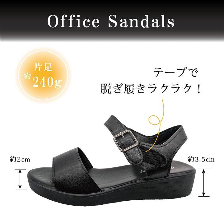 見た目シンプルで程よい厚底仕様のオフィスサンダルはオフィスはもちろん、普段使いのサンダルとしてもオールシーズン大活躍するサンダルです。