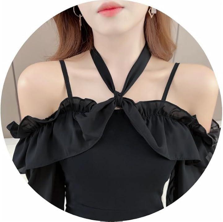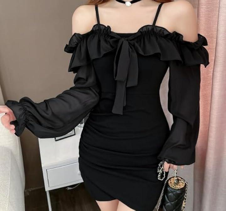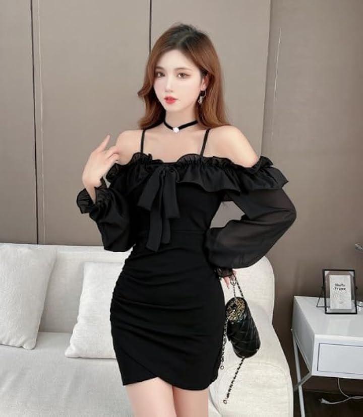 Off-the-shoulder cami tight mini frill dress ladies ribbon dress mini length camisole chiffon off-the-shoulder cute kawaii cute shoulder straps skin showing pretty pretty pretty sexy cabaret club party