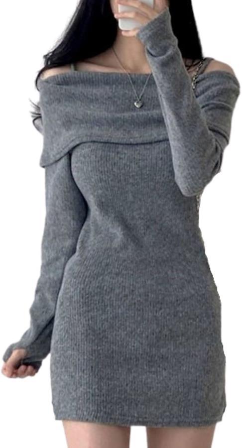 *エレガントな魅力と洗練されたセクシーさを演出する肩出しニットのミニワンピースです。
