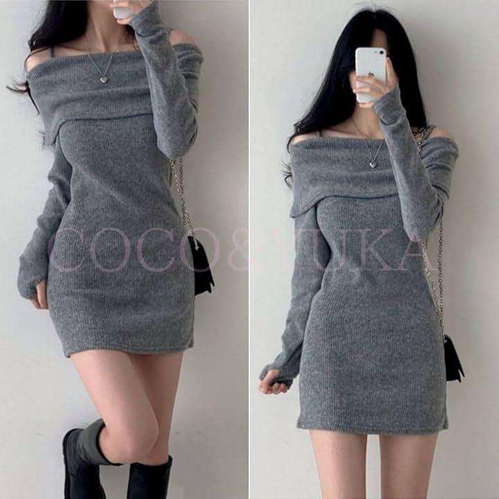 肩出し ニット の セクシー タイト な ミニワンピース です。